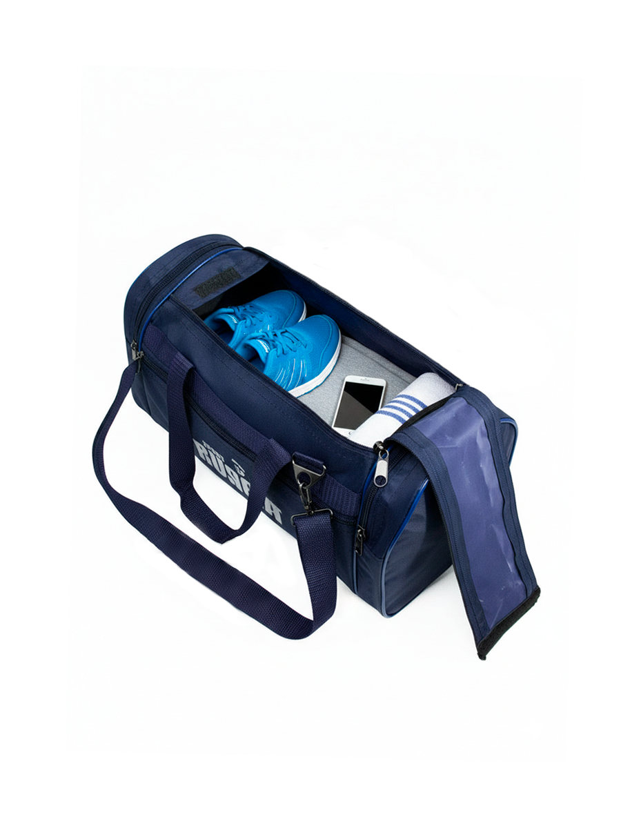 Сумка дорожная производство Россия. Компактная спортивная, вещевая сумка обьемом 20 литров на 7 килограмм вещей, сумка под кроссовки и полотенце. Небольшая, но вместительная и недорогая сумка имеет одно основное отделение с широким раскрытием, внутри все перегородки выполнены из прочной подкладочной ткани. Обьем основного отделения 15 литров и размеры 34 см на 24 см на 20 см, два больших боковых кармана и один карман спереди закрываются на замках молния. Две ручки для ношения в руке, крепко вшиты и надежно закреплены, длинный регулируемый плечевой ремень из очень качественной и крепкой тесьмы может пристегиваться к сумке на металлических кольцах и карабинах. Внутри все перегородки выполнены из долговечной подкладочной ткани, все швы внутри сумки прошиты на специальном оборудовании, оверложены и закрыты по полной технологии. Данная модель отшивается на Российском промышленном предприятии с соблюдением всех самых жестких требований технологии. Цвет синий.